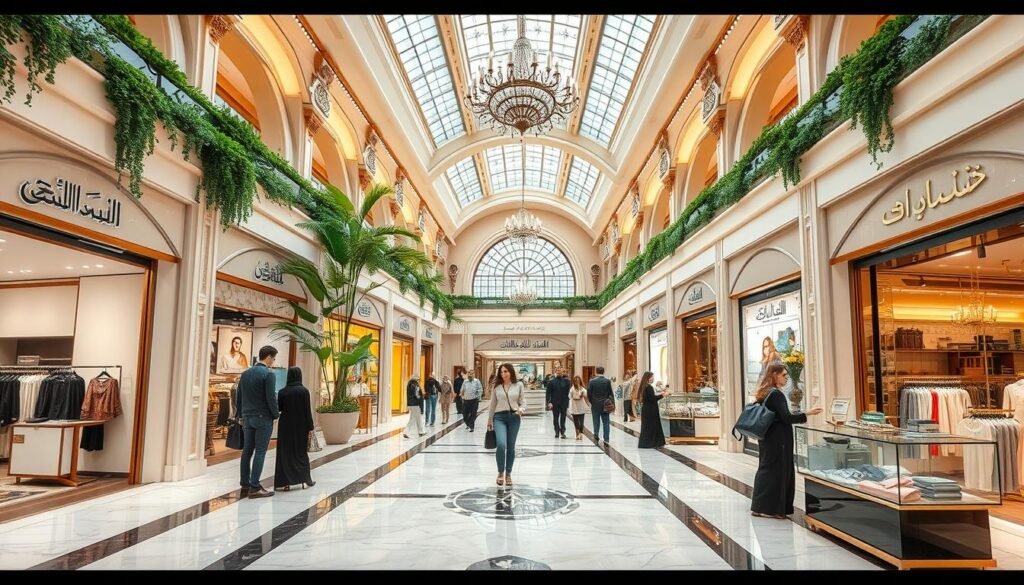 Gulf Arabia, I see how it blends old and new. Traditional souks meet modern designer collections. This mix makes shopping in Saudi Arabian